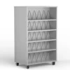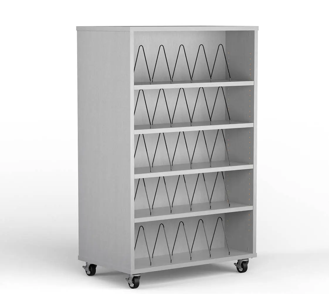 Blueridge is a line of stationary and mobile shelving created for high-use areas. With straight and curved, one and two-sided units, most media spaces can be efficiently filled.