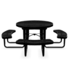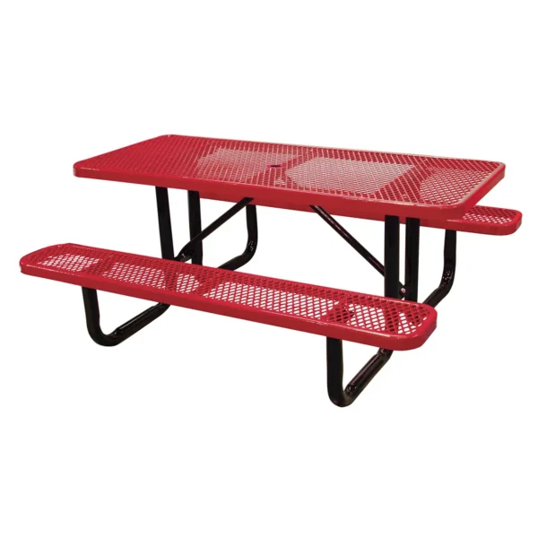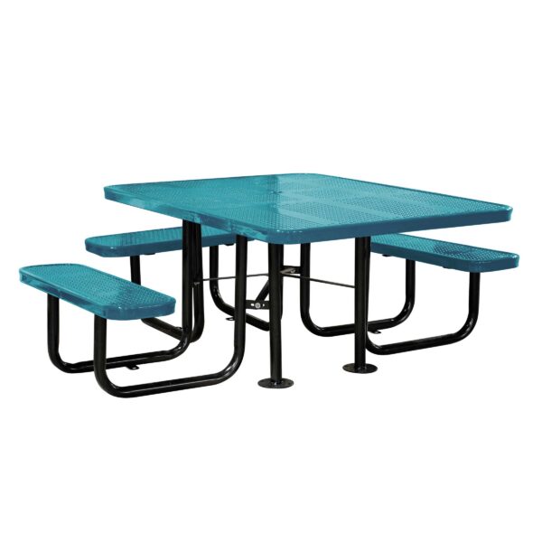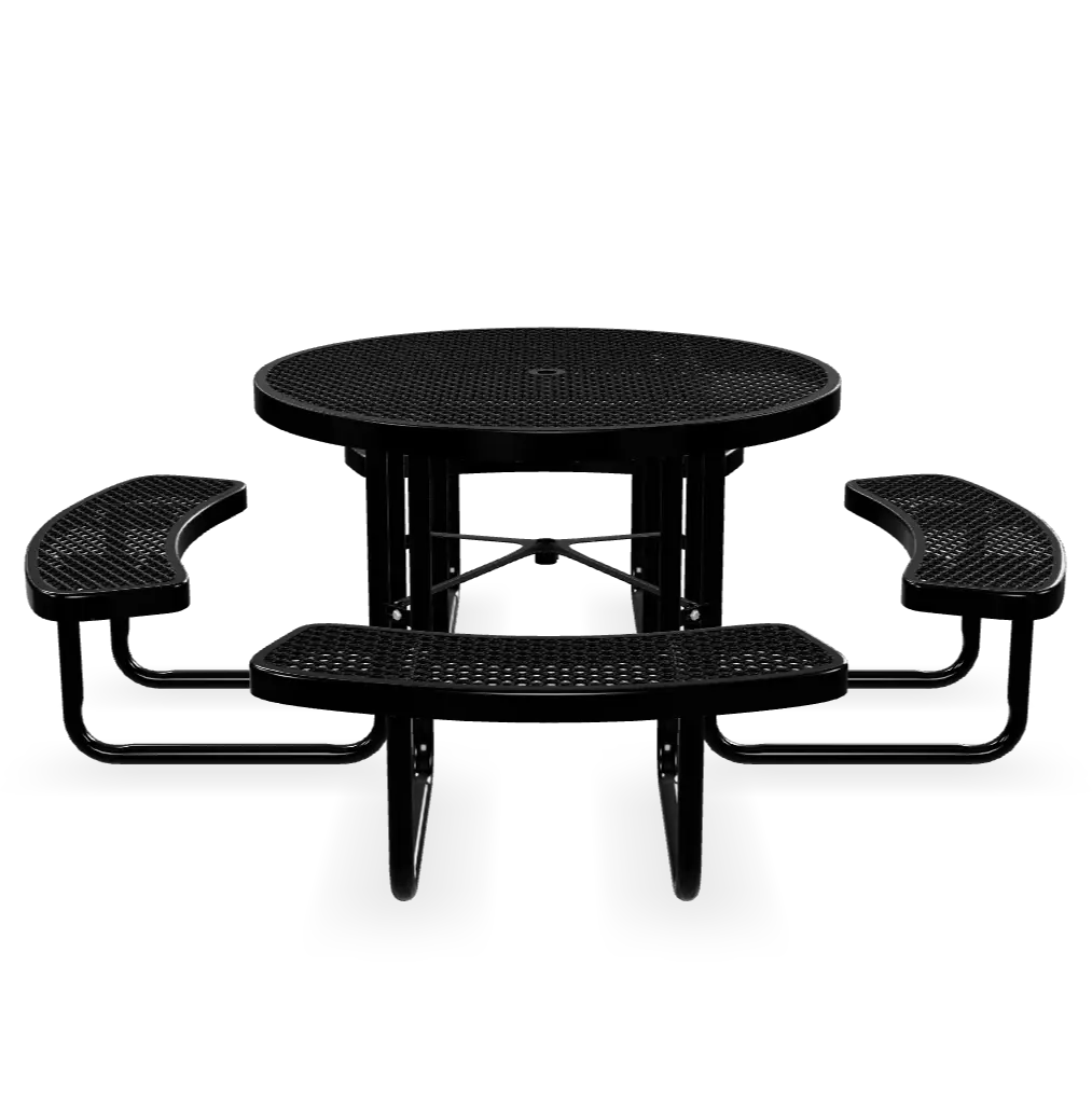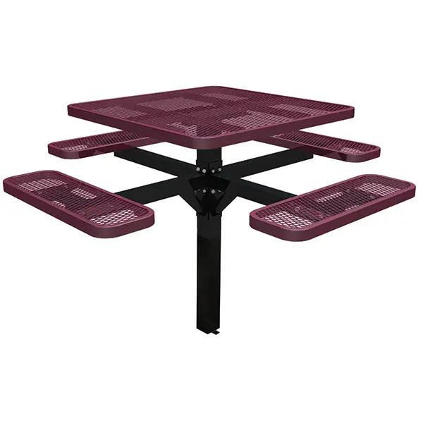 Multiple table options available, from round to square with attached seating, wheelchair accessible, and pedestal tables in perforated or expanded metal. Choose your mounting option: portable, surface or in-ground mount.