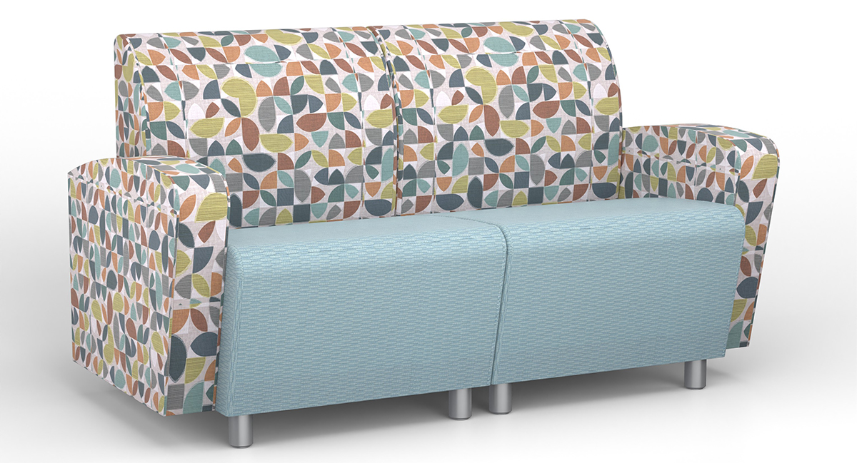 The customization range matters too, and not just for aesthetics. Haywood offers more than 50 standard fabric options from Grade 2 through Grade 10, with hundreds of designer fabrics available. Contrasting fabric combinations can be specified independently for the base, seat, back, and arms. For design teams working with a school’s brand colors or a campus identity system, that level of control closes the gap between the furniture catalog and the actual design vision. Customer Own Material is accepted with prior approval for specifications that require something specific.